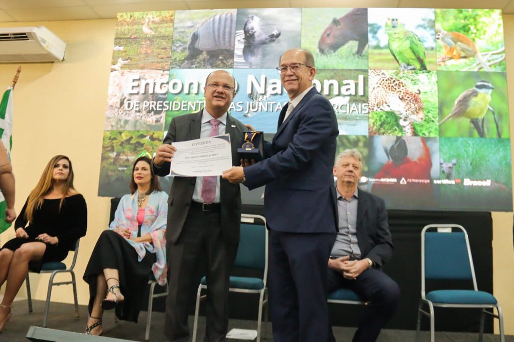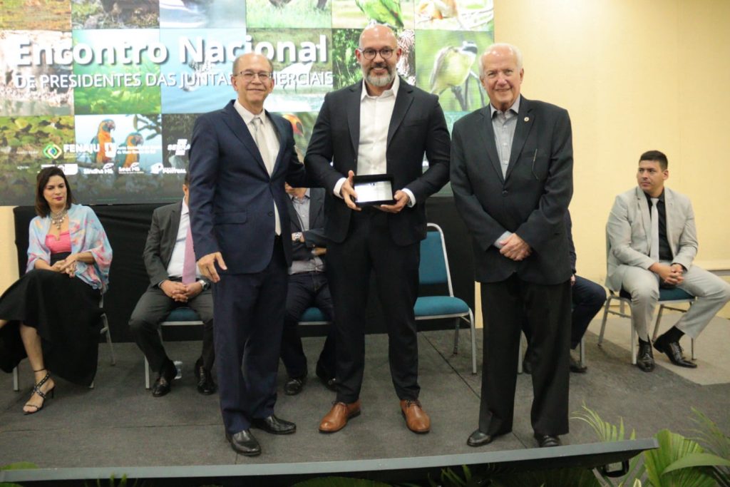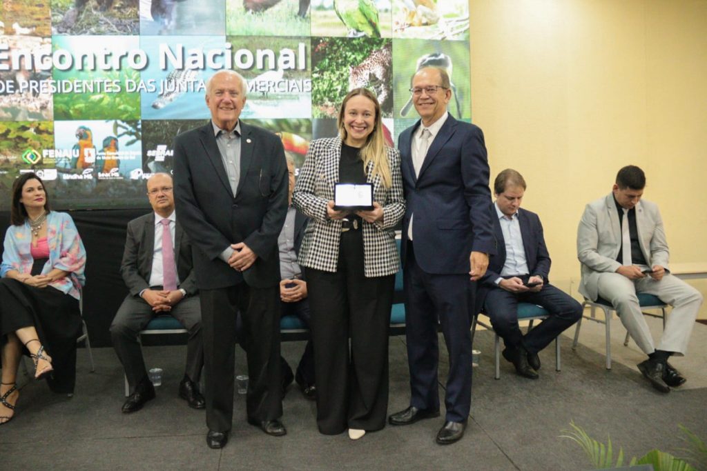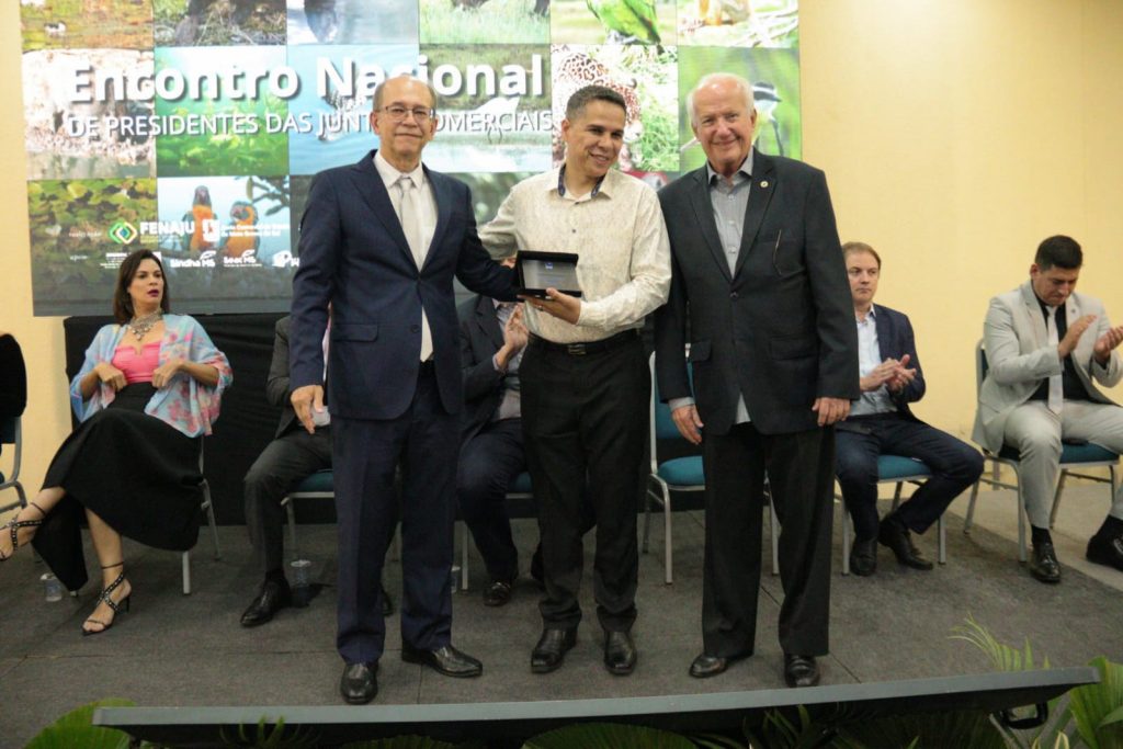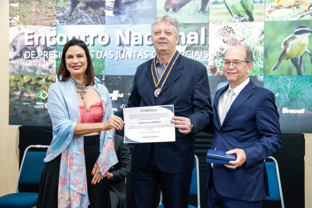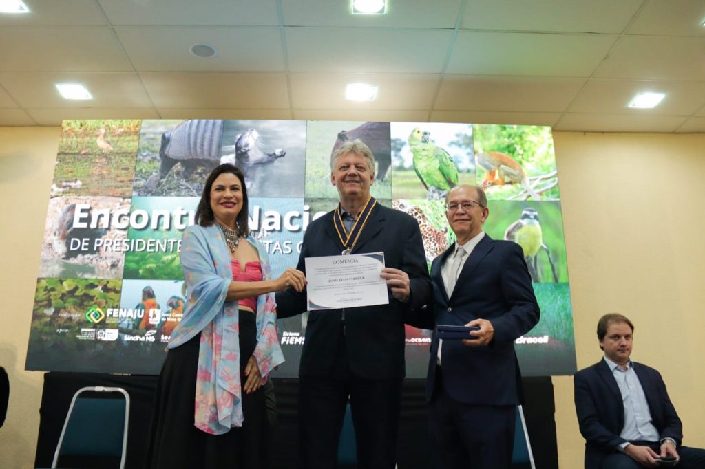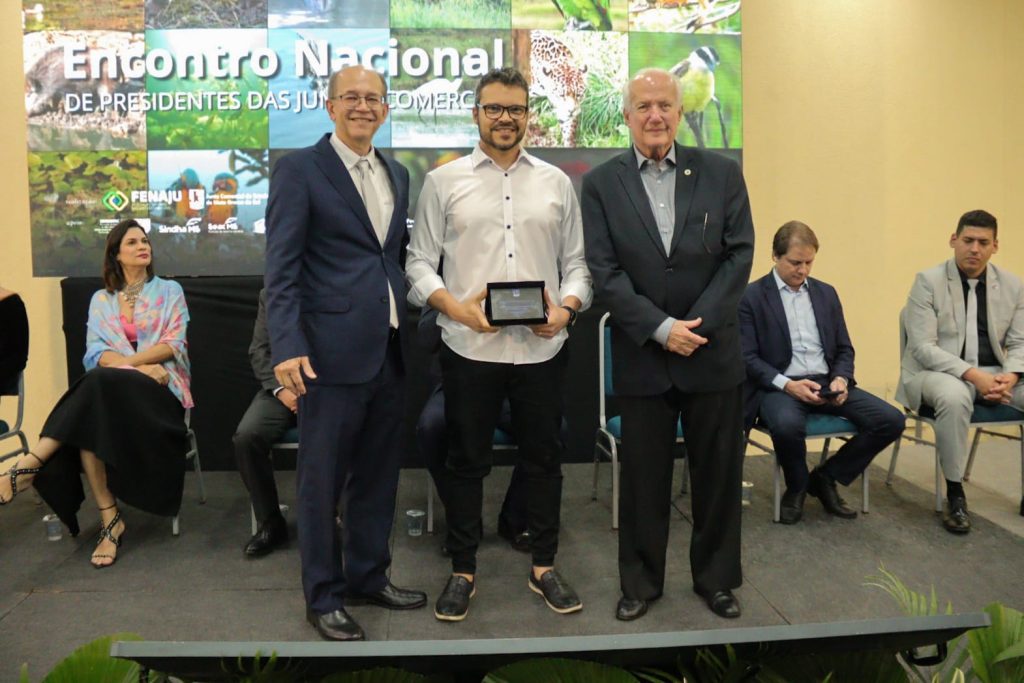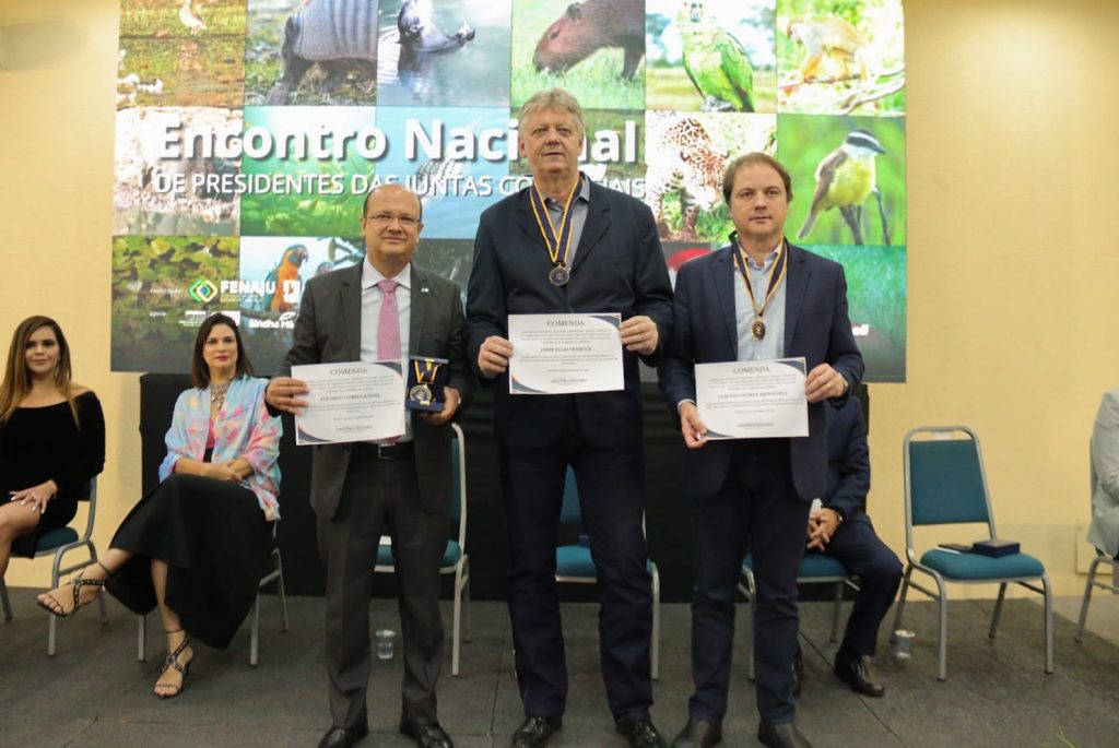 A noite também foi marcada por homenagens, feitas tanto pela Fenaju, quanto pela Jucems. O vice-governador José Carlos Barbosa, o secretário Jaime Verruck e o superintendente do Sebrae MS, Claudio Mendonça, receberam a Comenda da Federação Nacional das Juntas Comerciais.